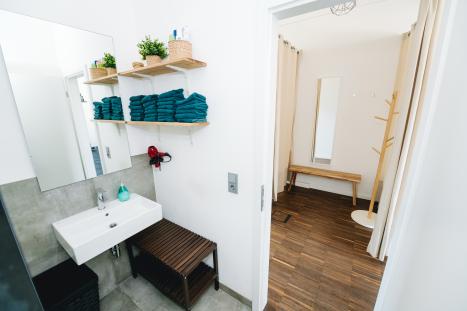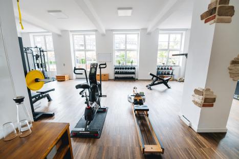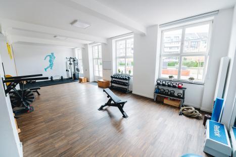 Unser Fitness Loft liegt in Düsseldorf Bilk in einer ruhigen Hinterhof- Parkanlage mit sehr guten & kostenlosen Parkmöglichkeiten. Der Raum ist 109 Quadratmeter groß und hat neben einem großen Fitnessraum, zwei Umkleiden, eine Dusche, WC und eine Küche. Besondere & ruhige Atmosphäre und geeignet für Trainer/-innen, Physiotherapeut/-innen und Kurs- Aktivitäten/ Seminare.